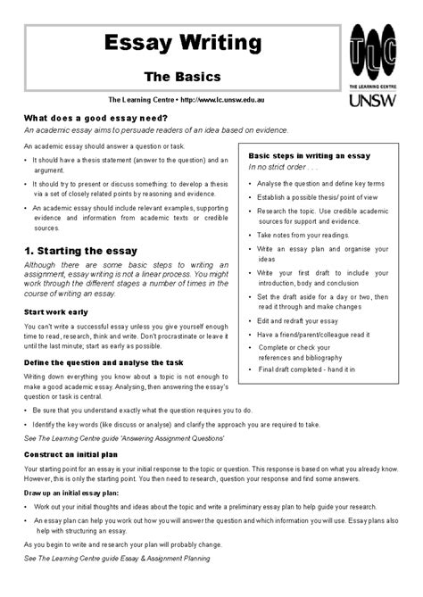 Read Online The Basics of Essay Writing Doc
